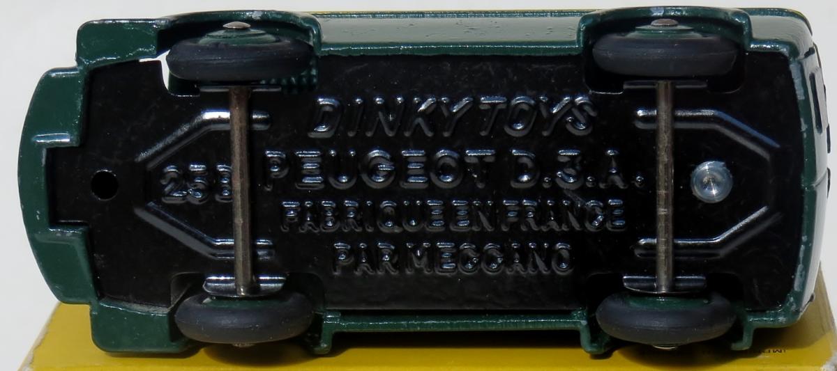 This model and its box confirms that the US requirement for the use of English for the country of manufacture was relaxed for those models that were already in production at the time when French Dinky Toys commenced being imported into the US in quantity. The box on the other hand has an “indirect message” with that compliance!