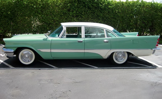 In 1955, along with all Chrysler models, De Sotos were redesigned, given a flatter bonnet (hood), a sweeping side panel and given names denoting their different styling and features, Firesweep, Firedome (previously named) and Fireflite.  The photograph below is that of the 1955 Fireflite.