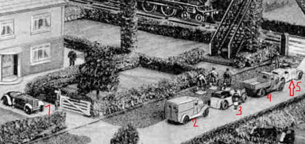 “But wouldn’t it be exiting if one did turn up! An even earlier picture reference exists in the April 1933 issue of Meccano Magazine in which the four road vehicles from the 22 series are used as lineside effects. It is not possible, however, to tell whether these are finished castings or mock-ups.”