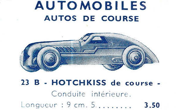 There are four special Dinky toy France catalogues 1939, March, Mai, September and December. All have the name Hotchkiss and this is a misprint of course. All other Meccano product catalogues and booklets have the correct name Auto de course. The Meccano 1939 products catalogue even has the correct name. just a error in these leaflets. You also can find the December leaflet at the DTCA site under catalogues.