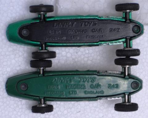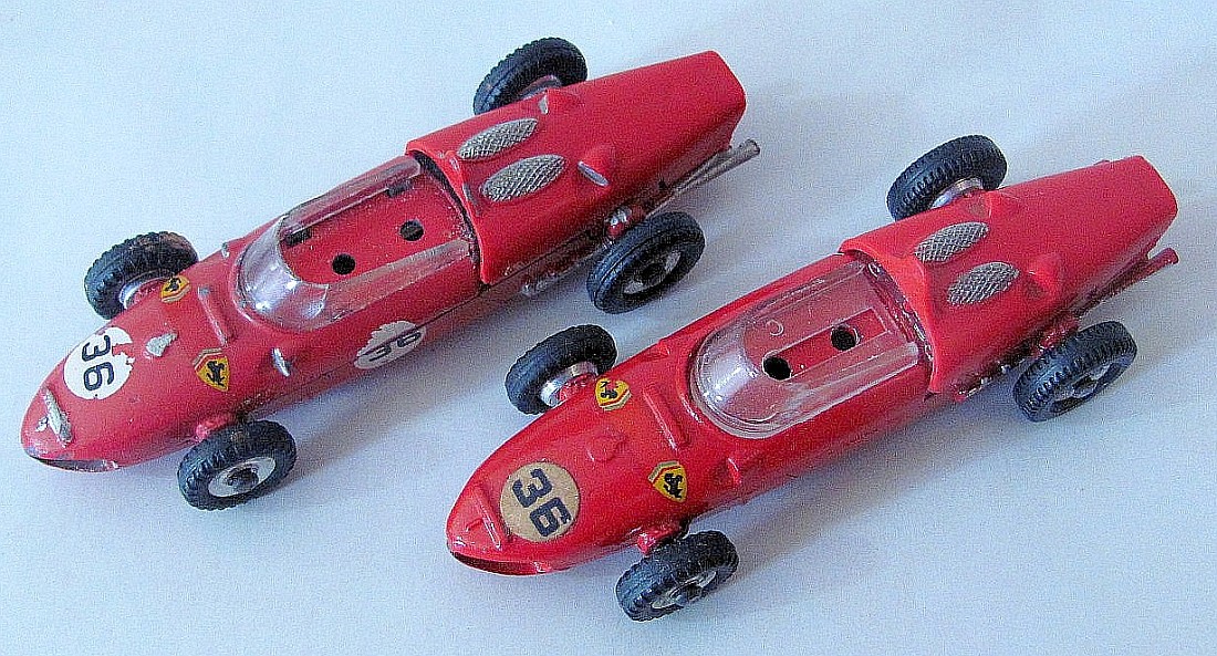 Nice Brmms!  Just a note on the missing windscreen of the right-hand version.  All the four racers in this series had a change in windscreen style where it had a section that went under the driver who held the whole thing to the casting.   Also the number roundel was changed to a sticker and the helmets were silver for all racers instead of blue, red, green or yellow.