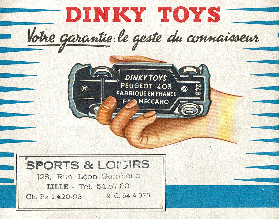 I was struck by the free interpretation of the 403's base plate on the rear cover of the September 1956 French Dinky Toys catalogue. Shape, text contents and direction are completely different! Kind regards, Jan