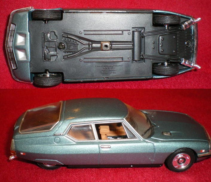 Al -- It appears to me that the Citroen SM was an "official" Atlas initiative, at least judging by all the information carried on its box, which I show a picture of below. My guess would be that a range of "what if" models was being considered, but got scrapped at the last minute, leading to this one model being dumped onto the Chinese market.
