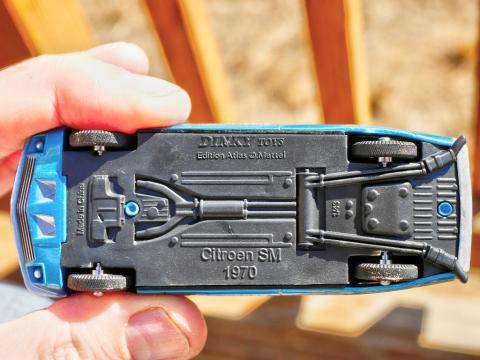 Just as important (more important) the aesthetic has to be right.  This Citroen SM looks alright at first sight but a Dinky Toy would have a screw on the base plate so you could dismantle it and put it back together.   Look, the Pilen has a screw  - it should be just like that.   The wheels are alright; tyres maybe too thin.  See they are thicker tyres on the pilen.   And shouldn't the doors open?  And maybe the bonnet or boot?  And there ought to be folding seats.   You know... like on the Pilen model.    The Pilen Citroen is more Dinky than the Atlas Citroen.  I would rather play with Pilen, thank you.