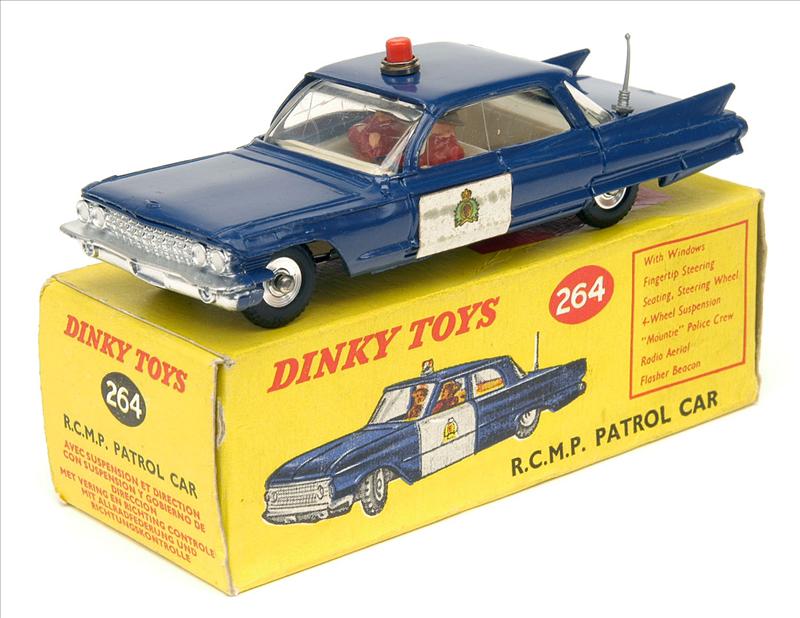 I've always been looking for this model but could not find a good example. Now I have both models of the 264 RCMP Ford Fairlane and Cadillac Patrol Car complete with box. Fortunately complete with antenna and decals that are often missing.