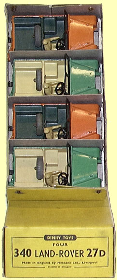 In the transition period of the renumbering around 1954 almost all existing models from that time got a new sales number and an individual (dual numbered) box. It is also the closure of the old system of trade boxes containing multiple loose models. From now on, the models get their own individual box with their own sales number. A new system of trade boxes was introduced, whereby a certain number of boxed models now were packed in a different kind of trade box.