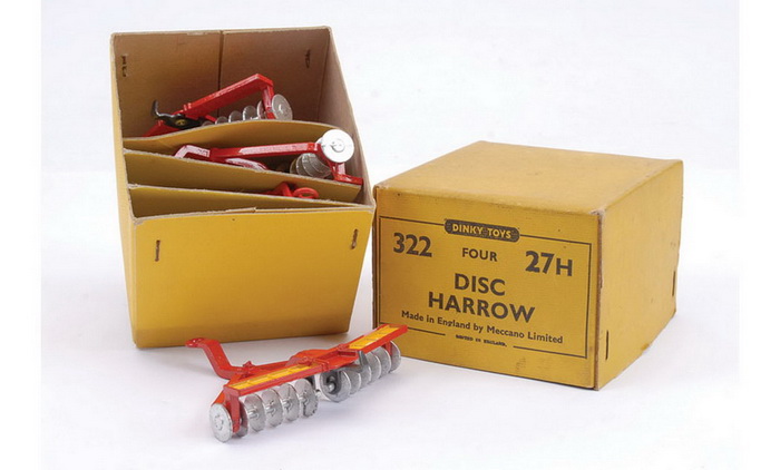 Dinky Toys 322 27h Disc Harrow dual numbered trade box. Photo by courtesy of Vectis.