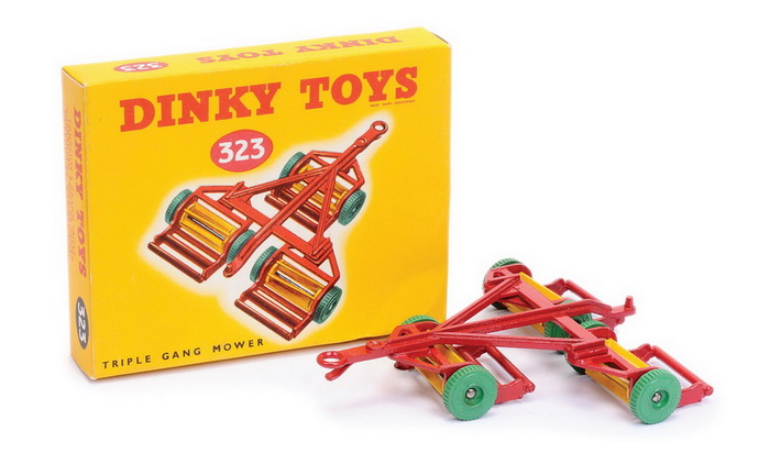 Dinky Toys 323 Triple Gang Mower did not receive an individual dual numbered box. Photo by courtesy of Vectis.