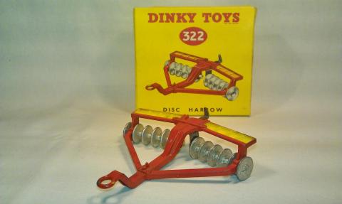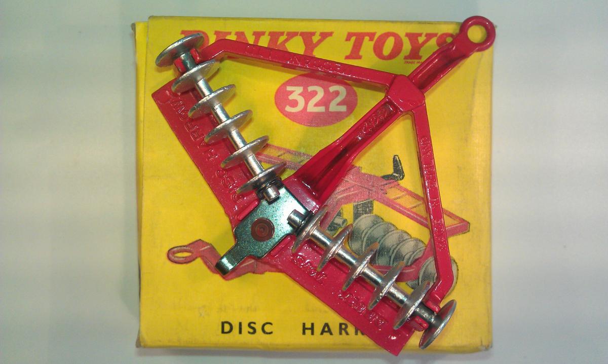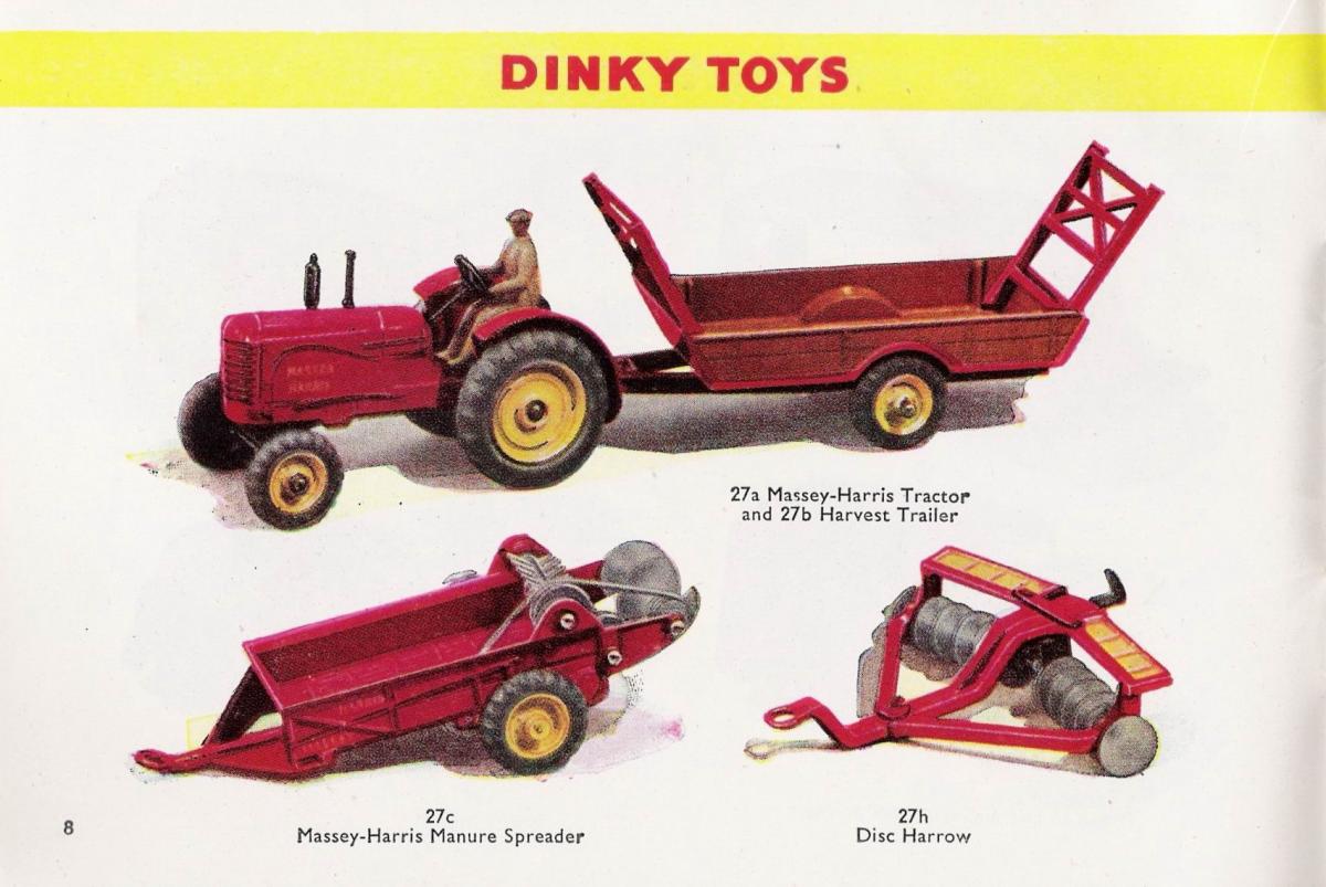 This small Dinky Toys model should not be forgotten. This model is part of the Series 27 Farm Equipment, which consisted of approximately 12 Farm related models produced from 1948 to 1973. Based on the images in the brochure below, it could be a version of a Massey Harris Disc Harrow.