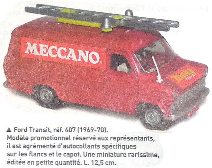 This Ford Transit was pubished recently in the French magazine "Collectioneurs et chineurs", the caption reads : " Promotionnal issue reserved to the salesmen, it is finished with specific stickers on the sides and the bonnet. A very rare model made in limited quantity.