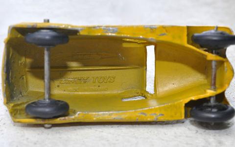 What has been erased on the inside roof, above the 'Dinky Toys made in England' statement?