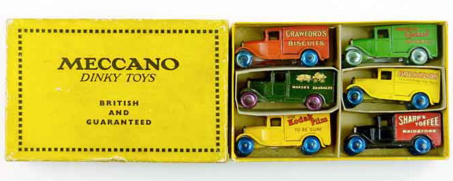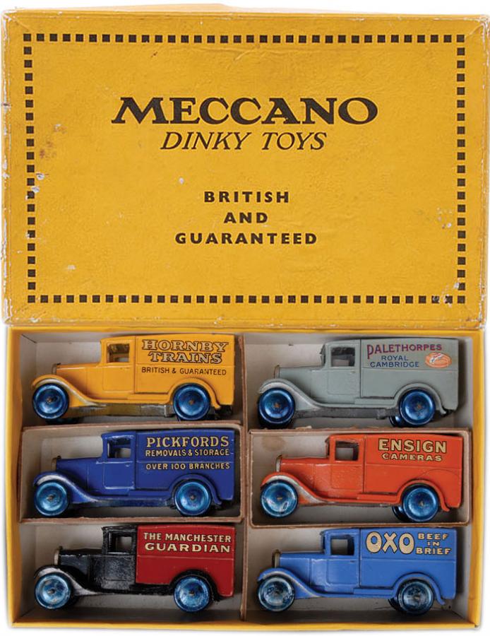 Dinky Toys 28/1 Trade Box of 6 Type 1 Delivery Vans with correct content. Vectis auction 10-3-2008 GBP 30.000.
