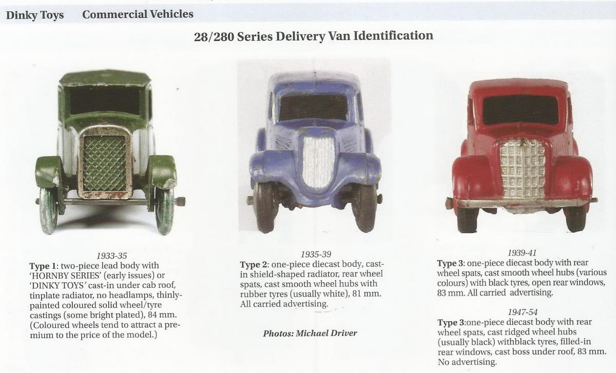 Below is shown in Ramsay's British Diecast Model Toys Catalogue 15th edition how the cast of 3 types of Delivery Vans can be identified, with photos and description.