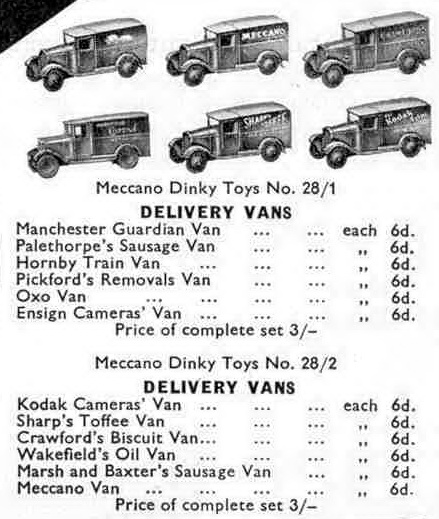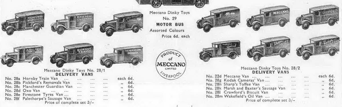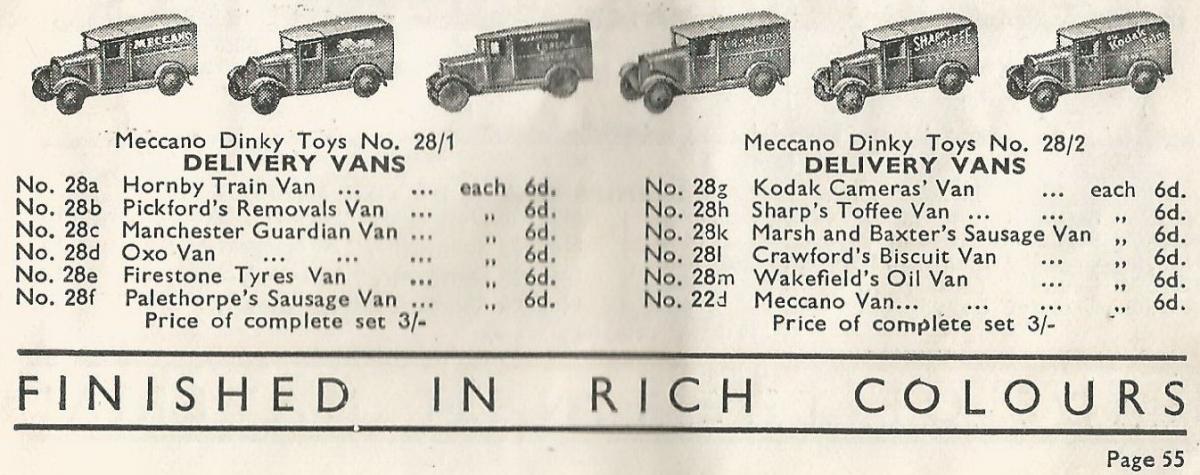 MM September 1934: series No. 28/1 and 28/2 Delivery Vans appeared for the 1st time with pictures of all the Vans, now complete with name and model number