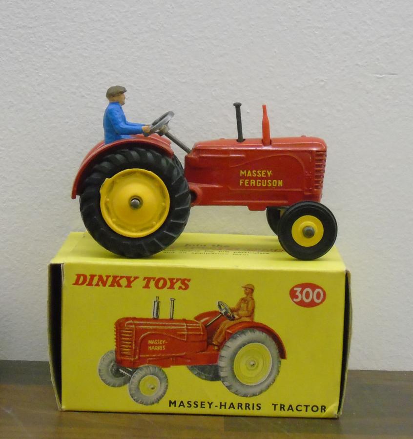 Note: Model 27a / 300 must have been very popular because it was produced from 1948-1971 and was also included in Gift Sets or combinations. No tractor model has been produced for such a long time (23 years!!!). It must have been very profitable for Meccano Liverpool and that is very special, because there never existed a real Massey-Ferguson tractor like Meccano Liverpool continued to produce the Dinky 300 model from 1966-1971 as a Massey-Ferguson.