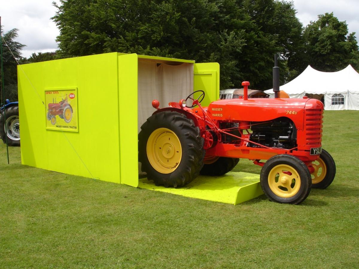 Massey-Harris 744d in a Dinky Toys 300 box as a garage. De tractor has not the correct mudguards according DT 27a/300.