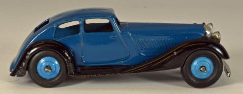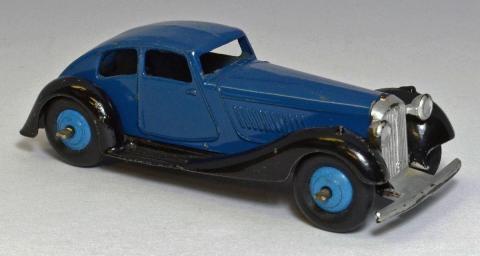 I can't believe there aren't any prior posts here, so will add mine. The 36 series added new models to the line after the 30 series, and featured some very nice English Saloons. This is the Rover Streamlined Saloon, and I was fortunate to be able to get a like new one from H.Hudson Dobson around 1958, when I was a fledgling young collector. This one is a bit unusual, as it has light blue colored wheels, so a late export version, and I don't think these are too common, as I usually see the ones with black wheels.