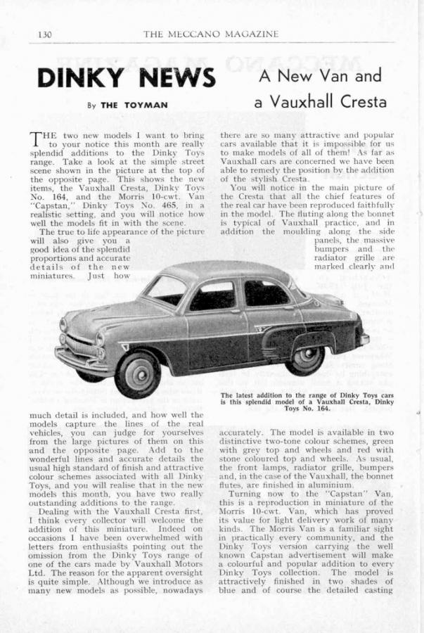 Thanks Bruce. I have read elsewhere that some think it was cheap mistake on Meccano's part to leave in the rear window screen and locking bar, instead of modeling it correctly for other than mail van purposes. But that would have meant either modifying that die (and not making anymore Mail Vans), or creating a new, costly die, so they took the easy route. But still a very nice little van, well worth collecting. Thanks for the additional info, especially the Meccano Magazine article, which is always nice to read.