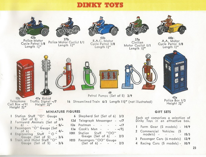 This model was prewar for sale in a complete set 49 Petrol Pumps, but according to MM and all catalogues also separately per piece. Richardson does not mention this and says it was sold in set. My question is: How was this 49d Shell pump sold individually by the retailer? From the box of the set or from a trade box of 6 or 12 pieces, such as for example prewar 42c and 42d policeman from set 42 out of a trade box of 12 pieces as pictured below? Postwar set 49 was only sold as complete set of 5.
