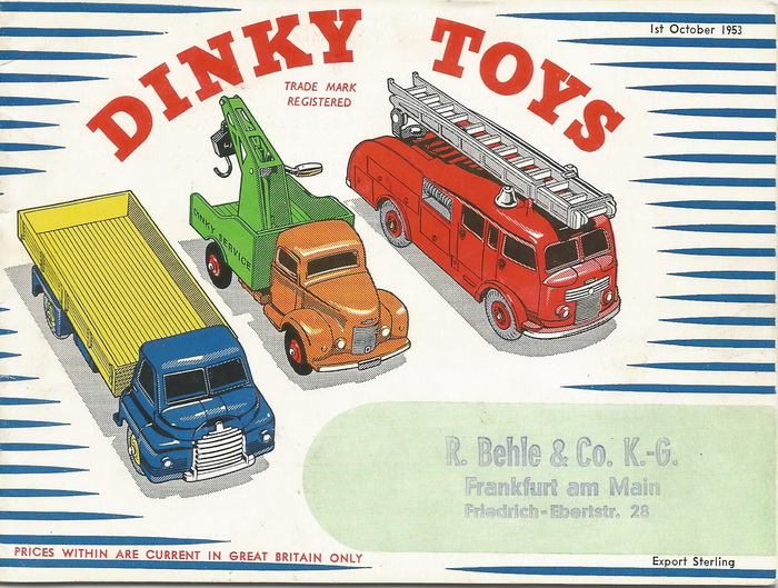 1953 British Export catalogue with 49 Petrol Pumps Set in export Sterling with shop stamp Frankfurt am Main. So also exported to Germany.