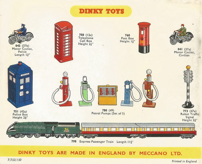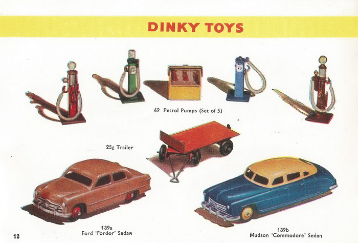 On Toymart I found a French complete set no. 49 of 5 pieces and on Vectis French 49a and 49c trade boxes of 6 separate pieces, but no British 49 Petrol Pumps trade boxes. It seems logical to me that there are such British trade boxes too, but I could not find them. I hope members can help.