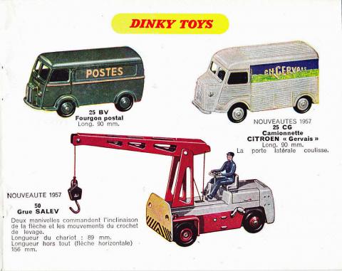 The introductory Meccano Magazine (April 1957) article tells that the real vehicle won the ‘Beauté France’ label. This was a prize for the most beautiful, elegant industrial design, and it was won in 1955. The scale is 1/43 and the colours represent the same beauty-winning colours of the original. The size is discussed, as is the functioning of the retractable base plate for replacing the cords. The back cover plate was repeated several times in the months to come. The special red-grey colour scheme represents the actual colour scheme, which contributed to the winning of the competition. In the catalogues it is shown correctly, but on the box illustration the scheme is red-yellow, which actually is the colour scheme of the wooden prototype.
