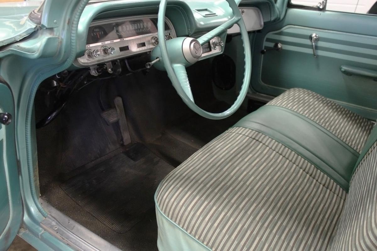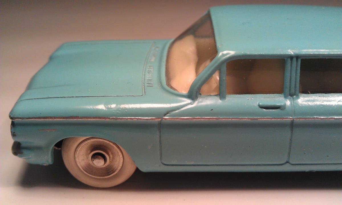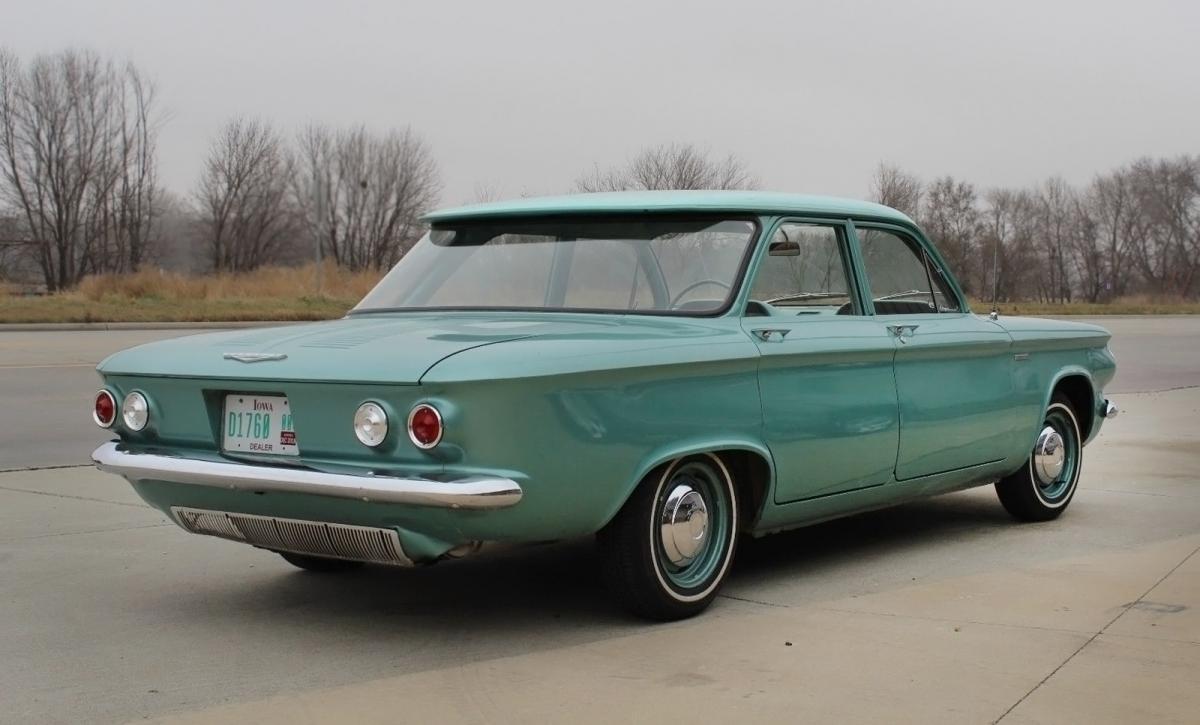 My 552 Chevrolet Corvair turquoise with flat fuel cap on left front mudguard