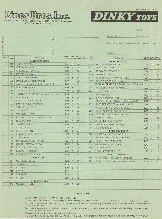 Price list Lines Bros USA 1965 with the BIG 6: 001 till 006 together with 552 !!!
