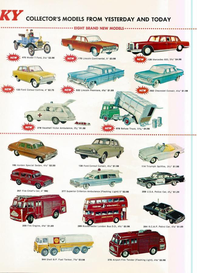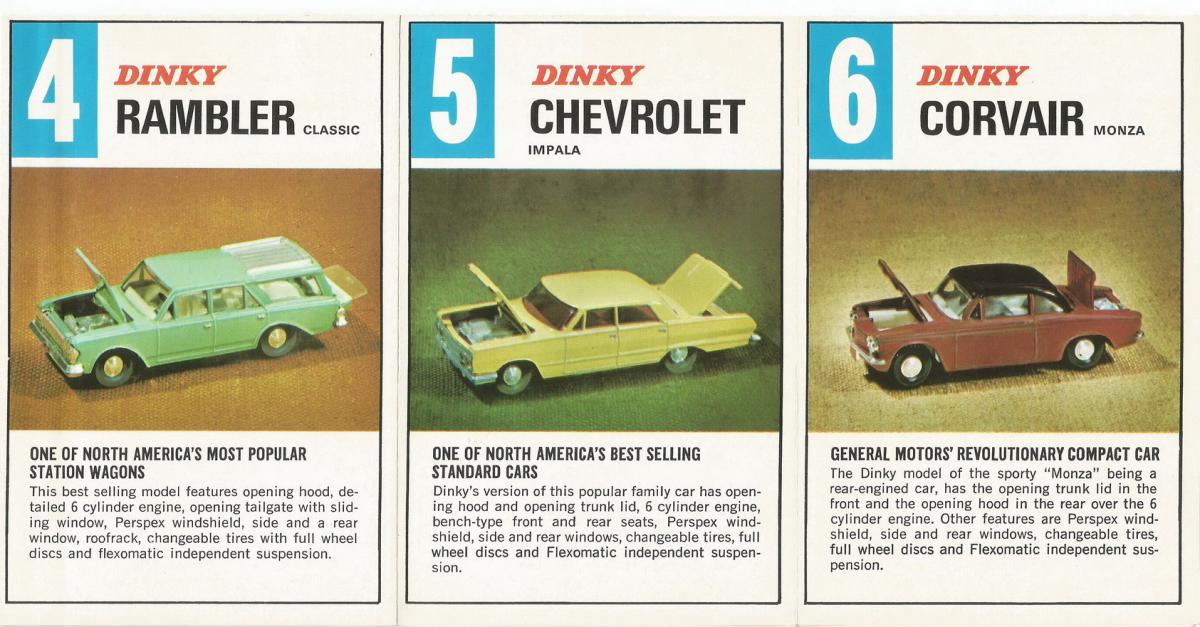 In the USA were a separate leaflet issued with the BIG 6 pictured in colour. Each model costed $ 1,69, except the Corvair which costed $ 1,49, later on each model for the same price of $ 1,98.