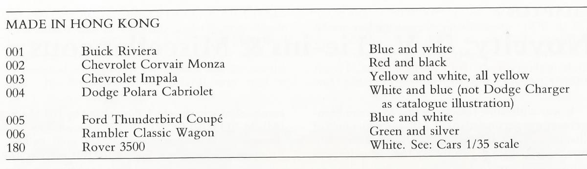 Hong Kong Dinky Toys 57/001 and 57/003 on prices list catalogue UK 1966-2. Not illustrated.