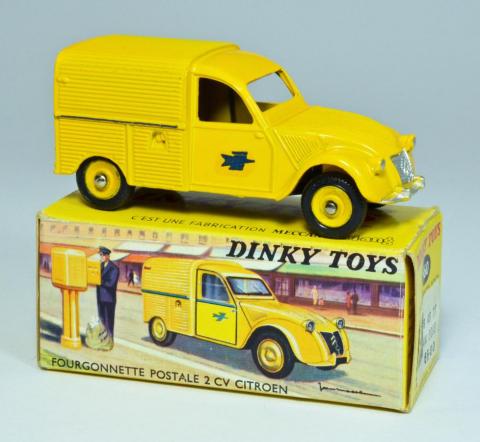 Another recent acquisition for my collection was a very nice example of the Citroen 2cv Postal van. This little van followed the original model, the 25d/562 Fourgonnette Incendie (Fire Department), which was introduced in 1958 and discontinued in 1963. The Postal version was made from 1963 through 1970, so quite a long run. In spite of that, like other French models of that era, it is somewhat difficult to find really nice ones, and even more so with the bright yellow paint finish, which tends to clearly reveal every tiny blemish. Another version of this was the 562h "Wegenwacht" van, made only for the Netherlands market, 1965-1968.