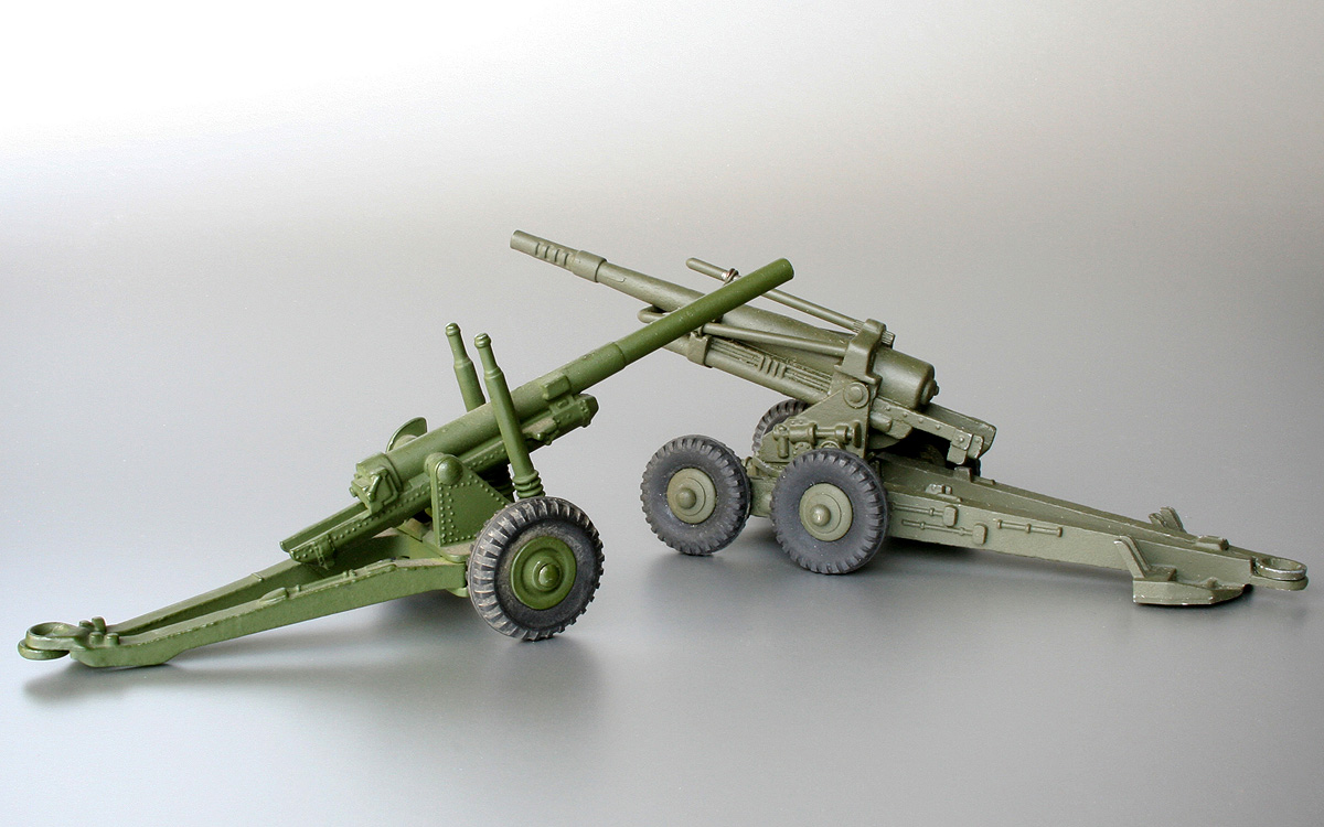 Down below a photo of the Dinky model, accompanied by its French counterpart no. 80E Obusier de 155 A.B.S.