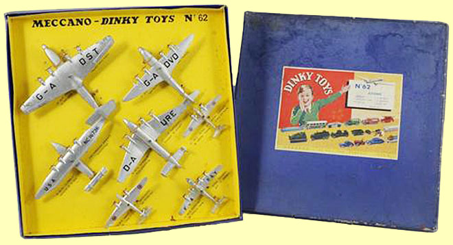 The set had been offered to a kid of twelve who was then an eighty four years old barrister, it was first hand and had been owned by the same person for seventy two years. As the seller was selling all his collection, one can assume that all the aircraft in the set are the original ones even if some of the registrations do not match those of the Dinky Toys catalog's picture.