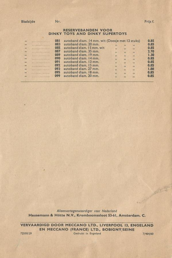 As addition to Jan W's contribution I add my Dutch price list 1965. As can be seen, it is exactly the same as that of Jan W, without a reference number or print indication, not even the year of issue. What stands out in comparison with the Dutch 1964 catalog is that in the Dutch DT catalog 1964 with stapled Dutch price list model 755 and 756 are missing and the price list is provided with a reference number 72550/29 and 7/464/60 and indication "Vervaardigd door Meccano Ltd, Liverpool 13, Engeland en Meccano (France) Ltd, Bobigny/Seine" and "Gedrukt in Engeland" in the Dutch language, what is missing from the 1965 catalog, in which only the name of the Dutch distributor is mentioned.
