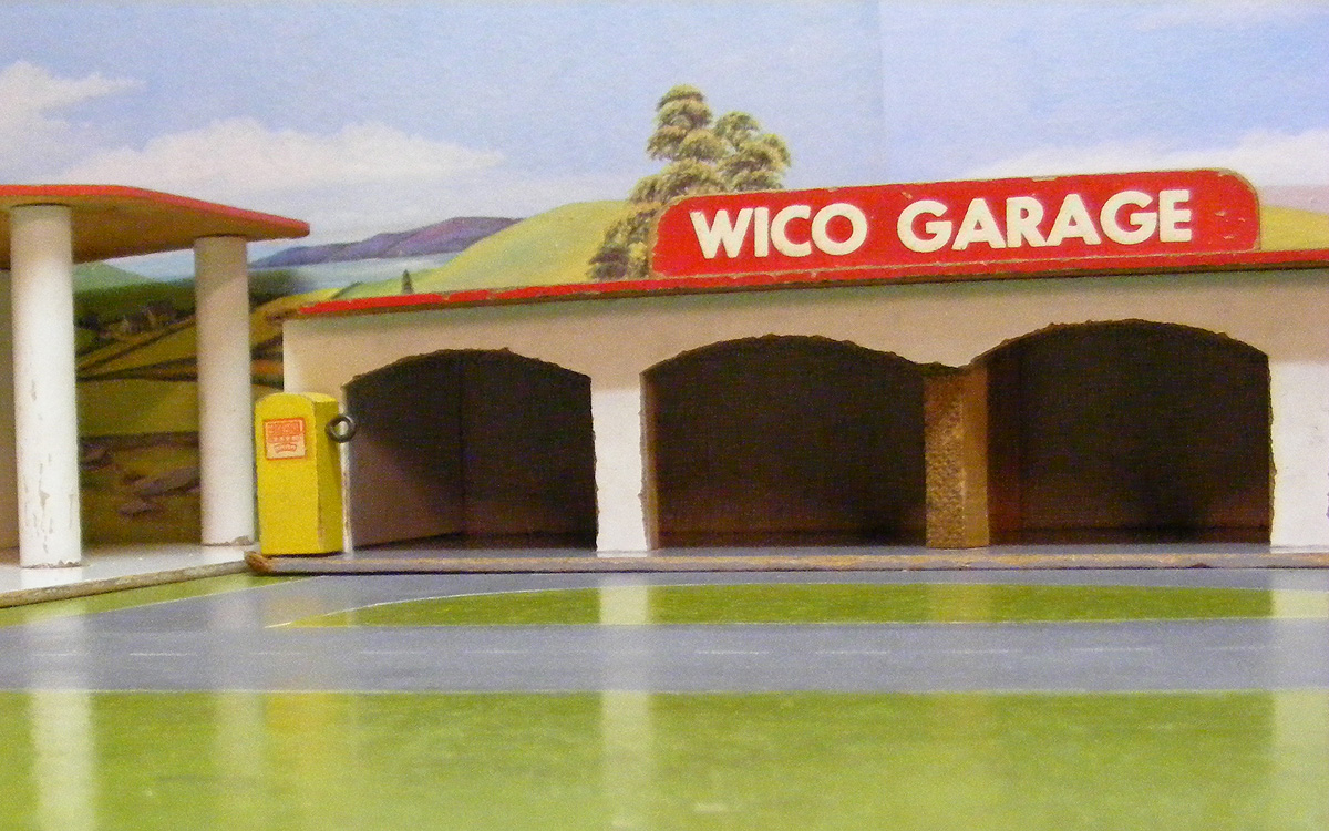 Hauseman & Hötte had their own brand of small scale mainly wooden toys, Mini Toys. They were advertised in their annual ‘Speelgoedboek’ (Toy Book), in nice colourful illustrations showing the garages etc. in combination with current Dinky Toys. Wico started its range in 1953 and made an endless range of various wooden garages, all based on the same construction principle.