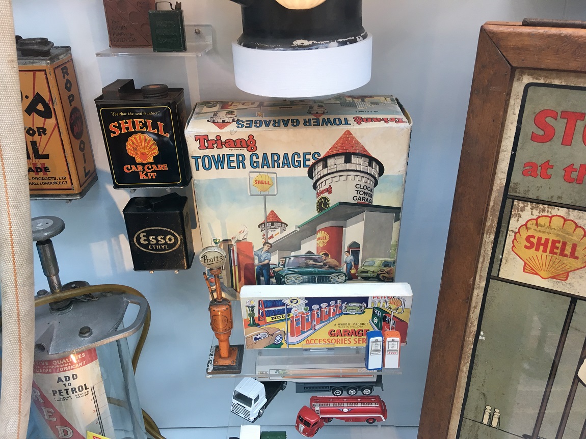 My example is No.2, although it is Shell rather than BP. It is missing some parts – the orange roof which fits on top of the tower, the baseboard for the tower building, and also the glazing for the showroom. I also had to buy the petrol pumps separately. It’s surprisingly basic, and is made mostly out of wood and cardboard. Certainly not in the same league as the Dinky Toys 785 Service Station. Sorry the pictures are rather poor.