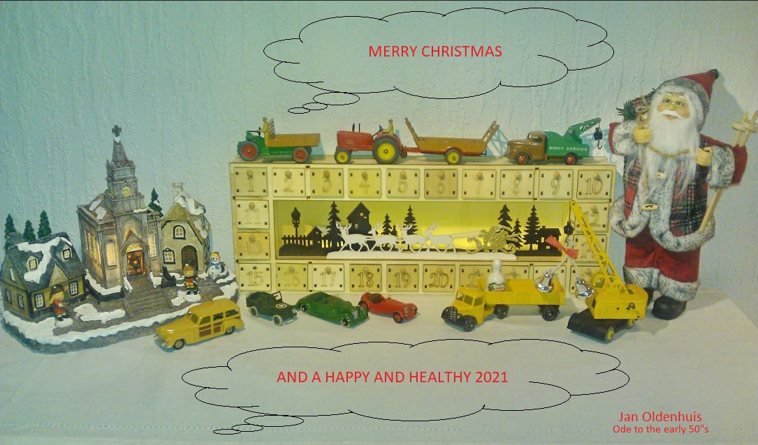 Hi all, herewith my seasons greetings for this Christmas. Circumstances are different from what we had imagined, but let's hope for, and be optimistic about some relief in the course of 2021. It's been so long for many Dinky enthusiasts to meet each other in person! All toy fairs were cancelled since March and it was of course the 2020 AGM weekend that we missed, unfortunately. I added a wonderful red British Salmson 2-Seater Sports to the collection last month, which happened to climb the Christmas tree on the quiet, and I quickly took the picture to be included in my Christmas card for this year. Have a Merry Christmas and a Happy and better 2021, all of you! Kind regards, Jan.