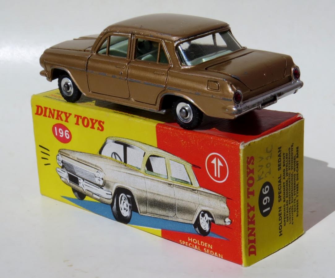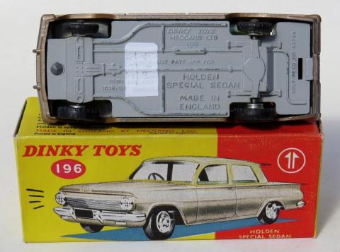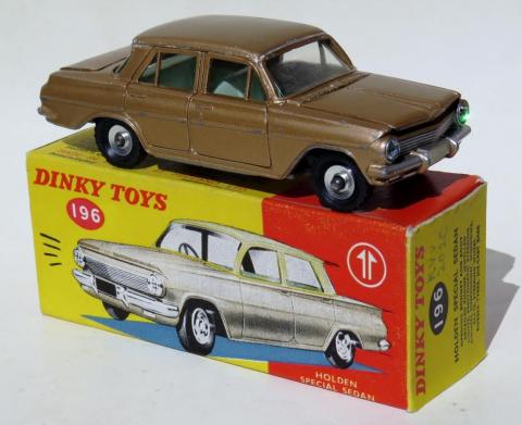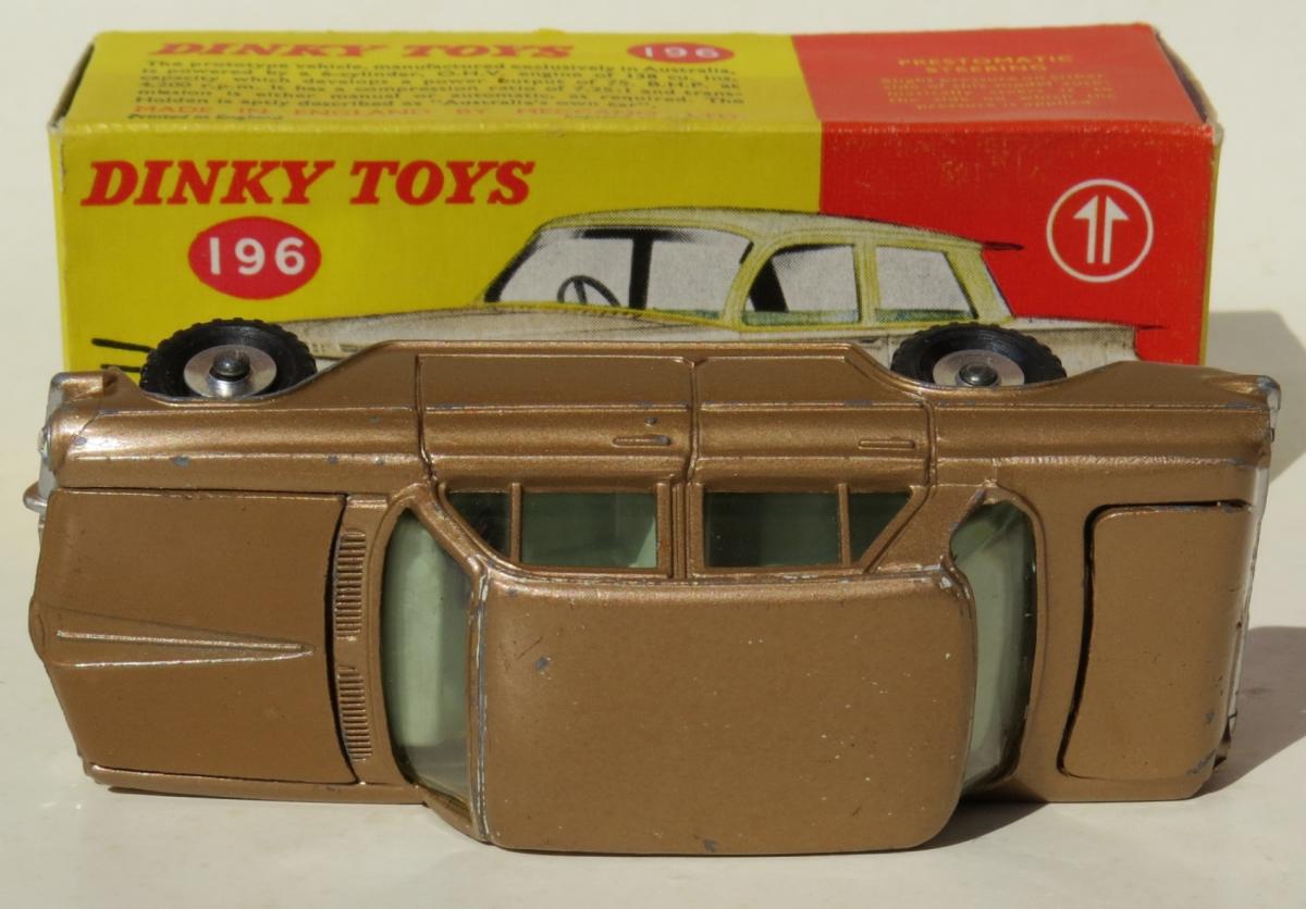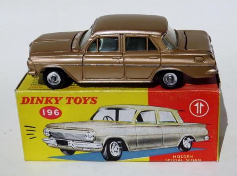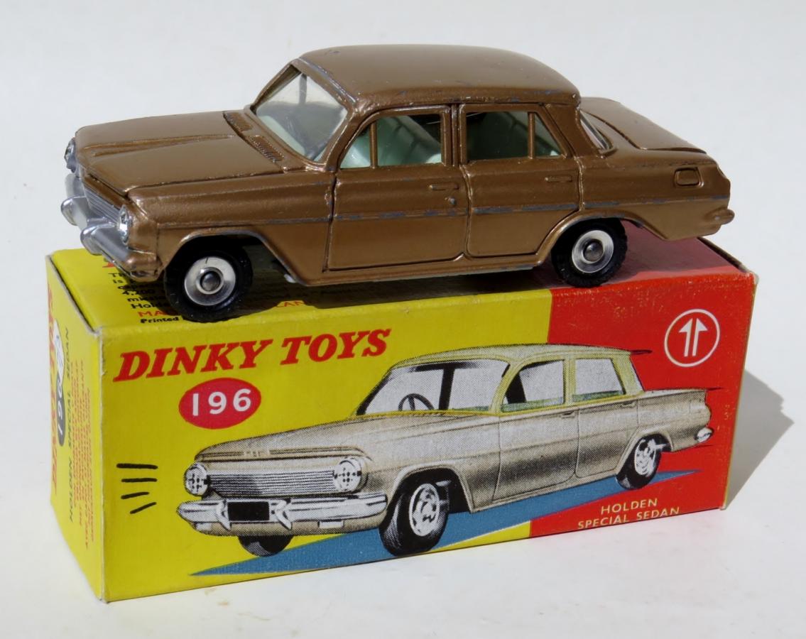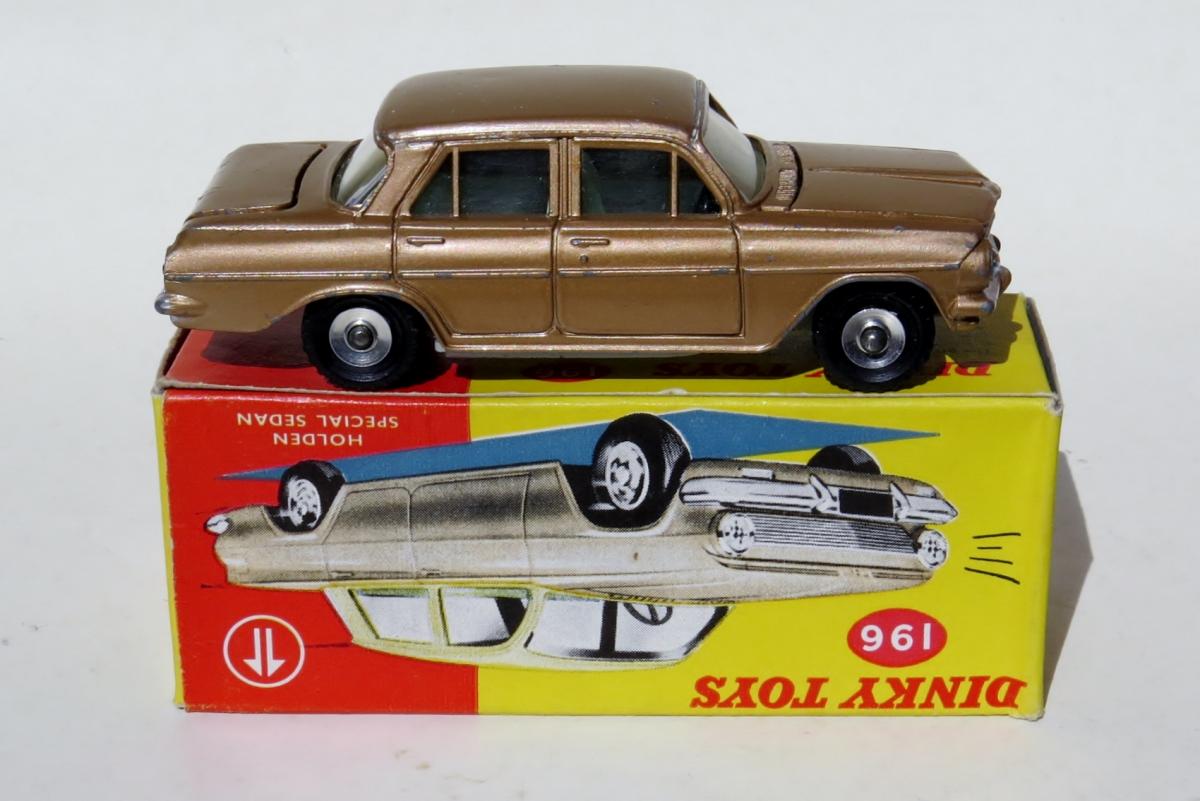 Lot 411 of the John Kinchen Collection auctioned a few months ago by Piers Motley Auctions in the UK was for a “Dinky 196 Holden Special Sedan in all metallic copper without white roof and rare white interior, boxed”
