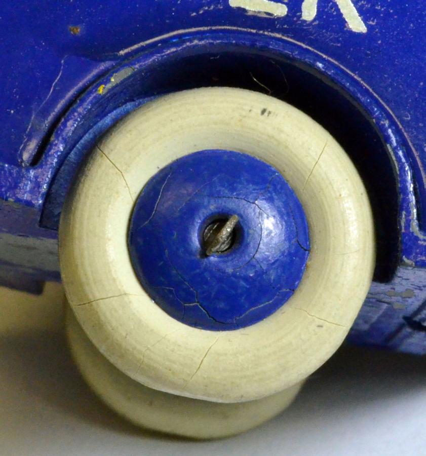 Thanks, gentlemen, for your helpful comments! I made my comparison too, indeed, with the Air Mail Car (the only Dinky I have with such blue pre-war hubs). Well, I have overcome my disappointment about the repainted hubs, and I'm well aware that it would be very hard (and expensive) to find a better Castrol tanker (I posted the photo of the overall model in the 25d thread).