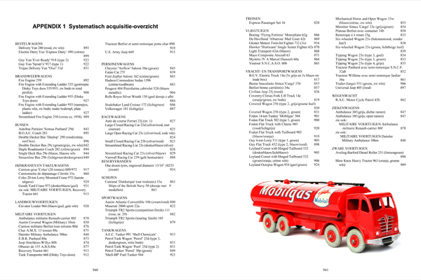 The supplement’s standard contents are an introduction memorating all personal Dinky events of the period in question, a main body including photographs, descriptions, comments and provenance of the newly acquired models listed, an alphabetical index and several appendices i.a. presenting the acquisitions in systematic and chronological order.