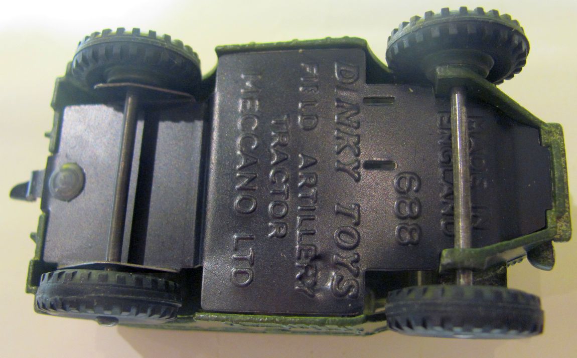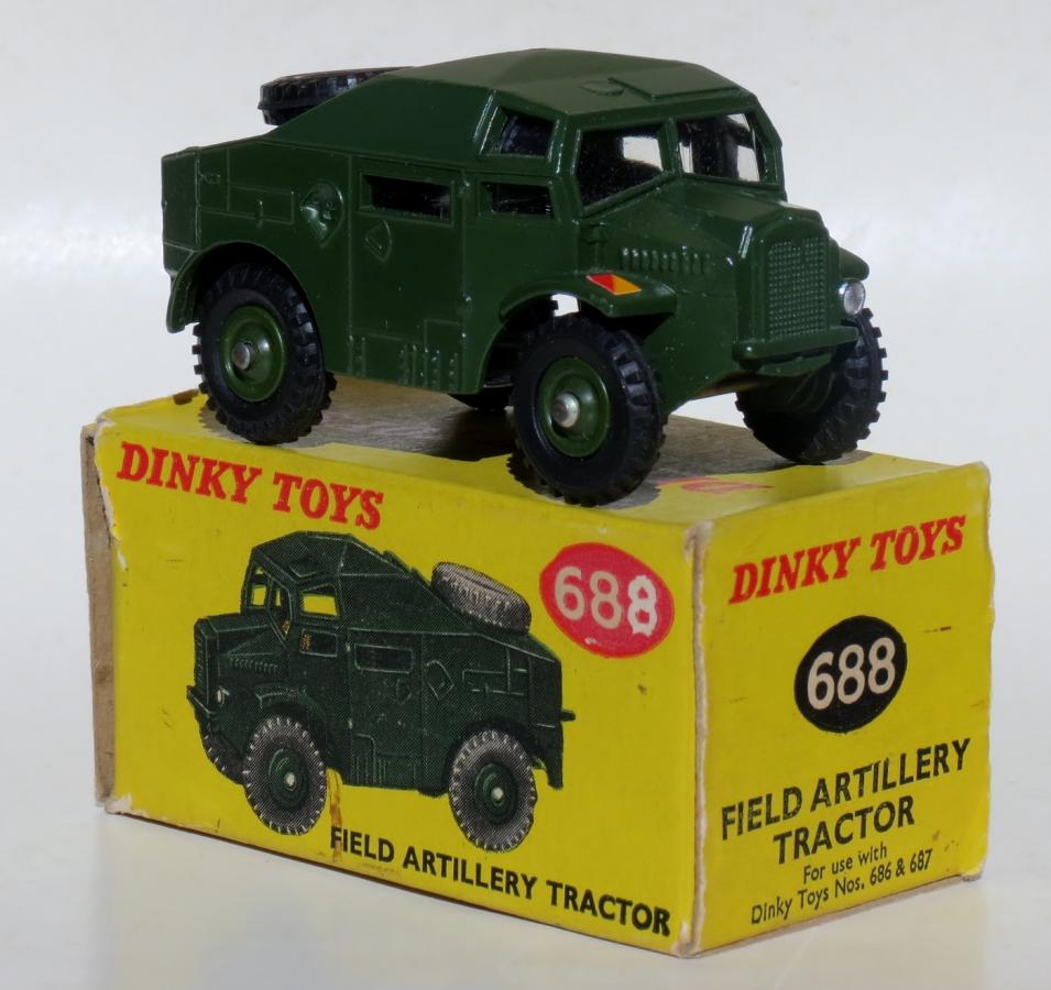 A late addition to the discussion on the 688 FAT. I have just checked my late issue 688 with plastic tyres and it fits all the characteristics of Dave's one - plastic hubs and 'wrong' insignia (original supply of blue/red on had run out by then?). Jacques is right, as the 'driver' has his arms crossed (left over 603s?).