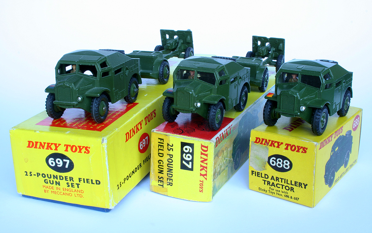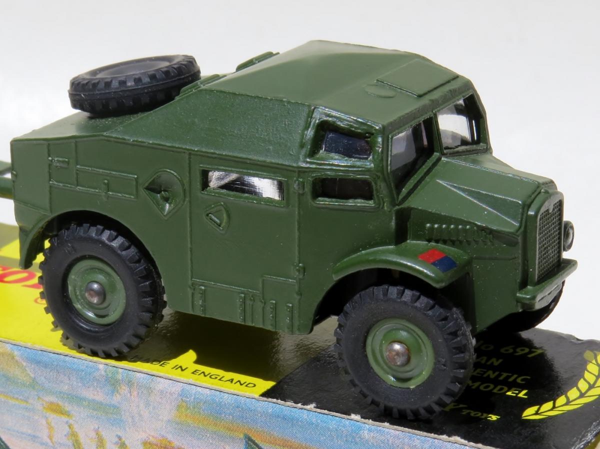 My Field Artillery Tractor as part of the 697 set in a pictorial end flap box has the Royal Artillery insignia, as well as the little circle thing, although I am uncertain if the fitting of glazing has much to do with it, but I stand corrected, as the spigot holding the glazing is towards the centre of the roof-line.