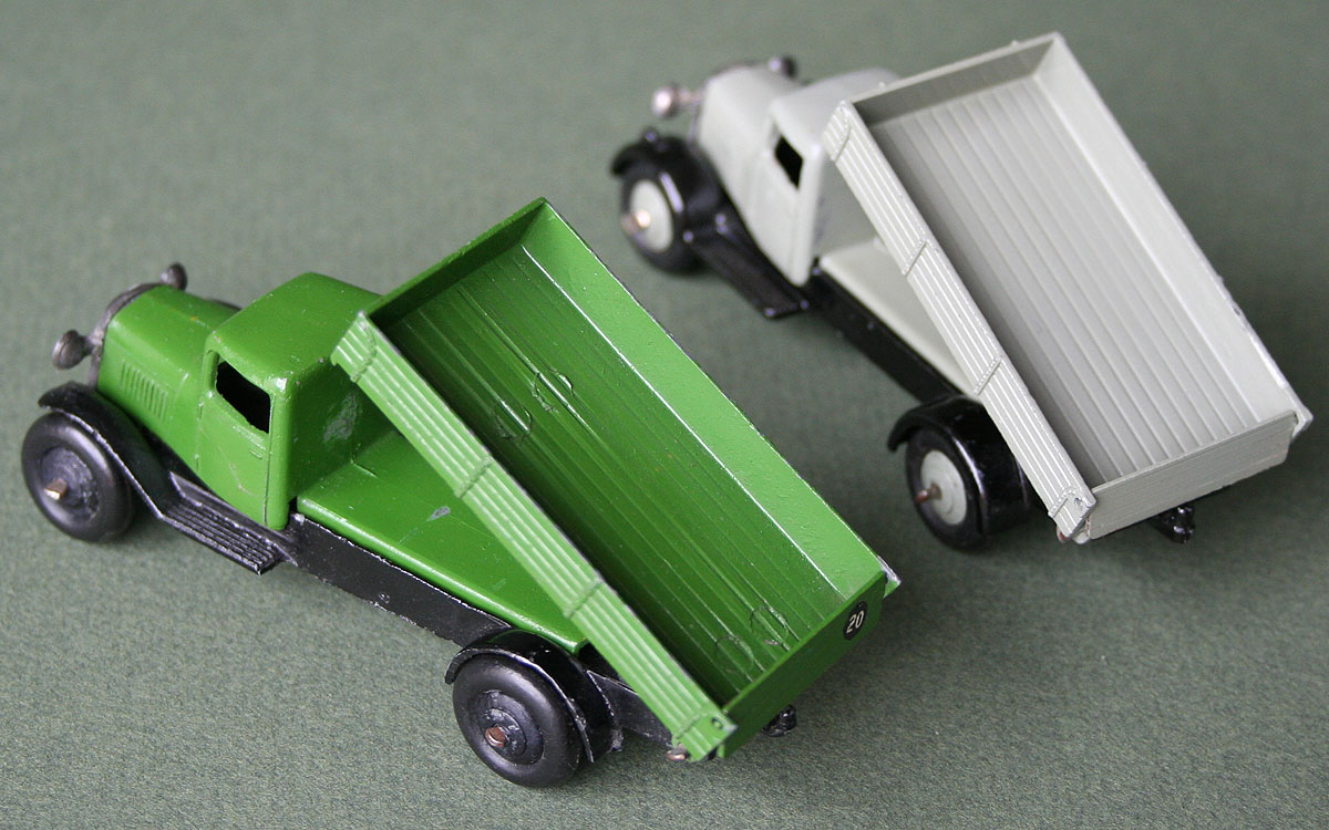 Hi Jacques, although not on the outside body itself, these ejector marks are also very prominent at the loading floor of the no. 25e Tipping Wagon, be it the first state (1st-3rd types) only. The second state (4th type and subsequent no. 30m Dodge Rear Tipping Wagon) of the die produced a much smoother floor surface.