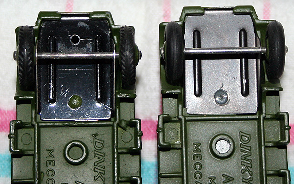 I have made a list and only five Dinky show one hole plus two with two holes. 51 models, probably more show bumps or depressions. The same base plate can be found with or without a depression as for example the VW 1200 ref. 181. Was the bump added or deleted ? The .pdf of the list is avaible on request.