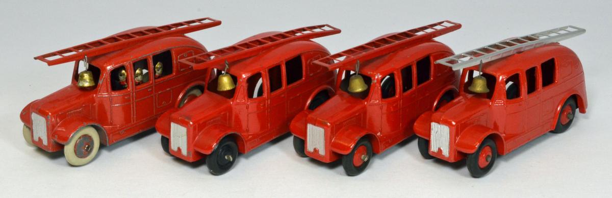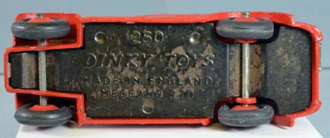 I am also posting my other versions of this long term Dinky model: the immediate post war one with black wheels, #25h, the next version, with red wheels, and finally the last version, #250, introduced around 1954, with domed axle ends, silver colored ladder, and a plain baseplate (the earlier ones all had the simulated driveline detail).