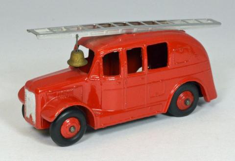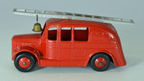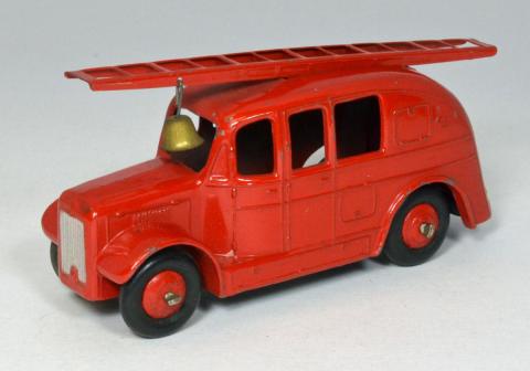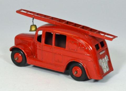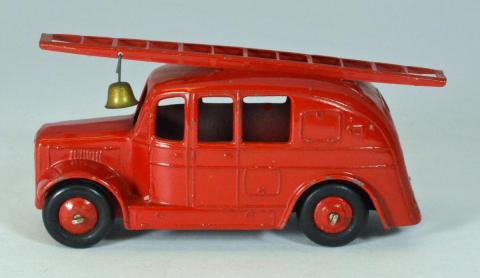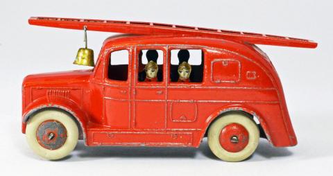 Just today received a new Dinky model for my collection, and a special one at that. That would be the #25k Streamline Fire Engine with Firemen, made from 1938-1940 I believe. This one is in excellent condition and suffers from some fatigue only in a couple of the wheels....the main body and ladder are in wonderful condition, with the paint only wearing thin on the raised edges, but otherwise it is bright, shiny, and free of scratches. All of the white tires are original, with one of them cracked.