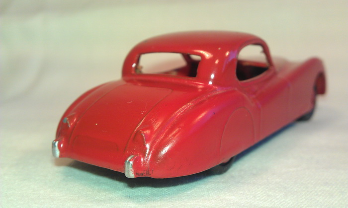 I am not certain about the accuracy of the red XK120 - the rear wheel covers (known as spats over here) have been altered probably to provide a better view of the "wire" wheels. I have never seen covers with a small opening - however, having said that, I guess anything is possible!