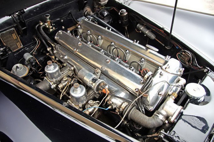 With alloy cylinder head and twin side-draft SU carburetors, the dual overhead-cam 3.4 litre straight-6 XK engine was comparatively advanced for a mass-produced unit of the time. With standard 8:1 compression ratio it developed 160 bhp (119 kW), using 80 octane fuel. Most of the early cars were exported; a 7:1 low-compression version, with consequently reduced performance, was reserved for the UK market, where the post-war austerity measures then in force restricted buyers to 70 octane "Pool petrol".