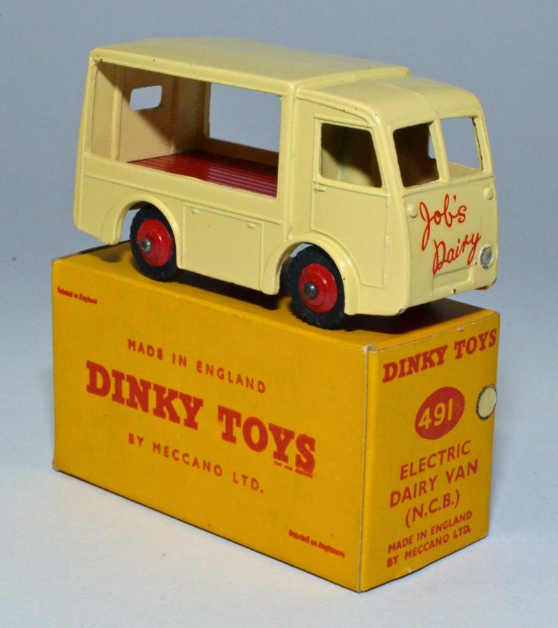 Just recently received this very nice "Job's Dairy" version of the 30v/491 Electric Dairy Van, made for promotional purposes in 1960. According to prior posts, only 1167 examples were made by Meccano, before die problems forced them to stop production short of the 3,000 ordered. Since this was a late issue, all came with treaded tires and the non-illustrated box.