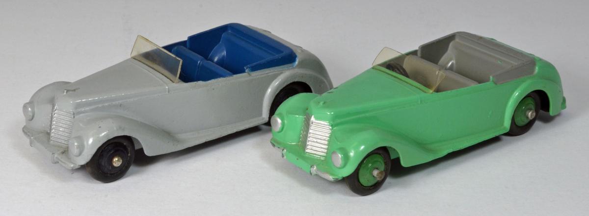 Just to throw the cat among the pigeons, my 38e Armstrong Siddeley with the green (later issue) export hubs has the thicker silvered windscreen that would normally be found in the early 1947 issues. Something tells me that this does not seem to be "the order of things" so perhaps the green hubs were issued far earlier than expected.